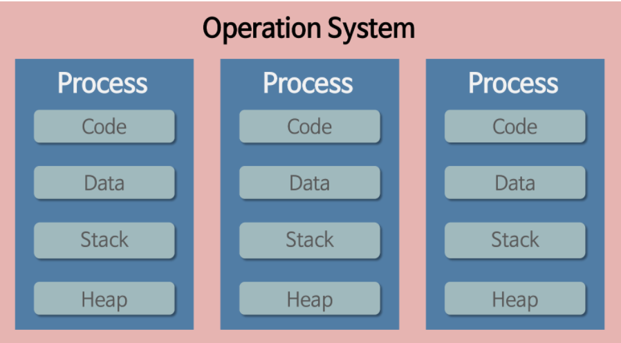 - Code, Data, Stack, Heap 구조로 된 독립된 메모리 영역