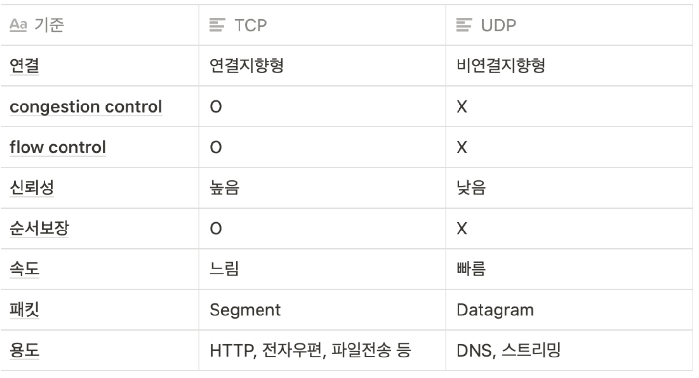 - TCP, UDP는 5 layer 중 Transport Layer의 통신 프로토콜입니다.