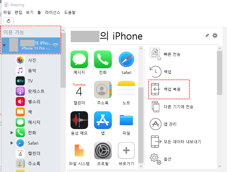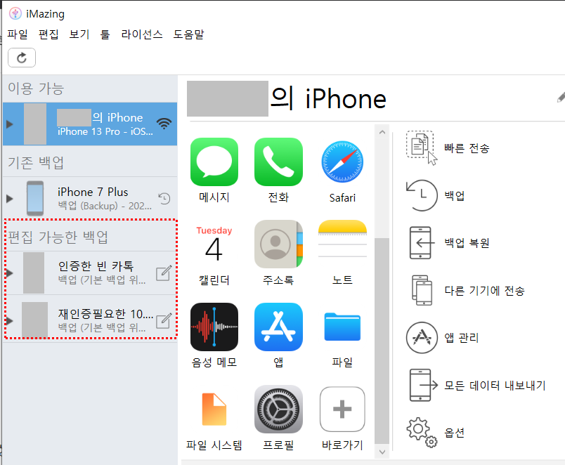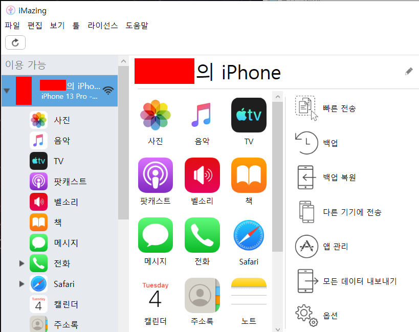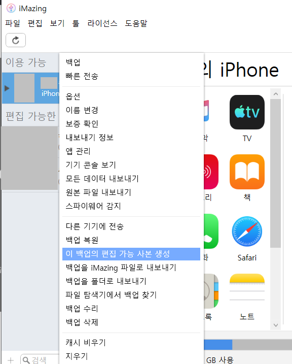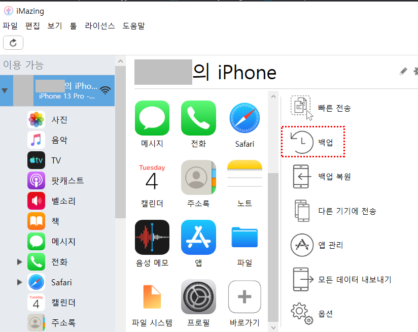 2. imazing에 아이폰을 백업한다.